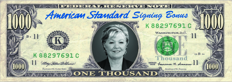 Credit will be issued when a minimum of $10,000 of American Standard