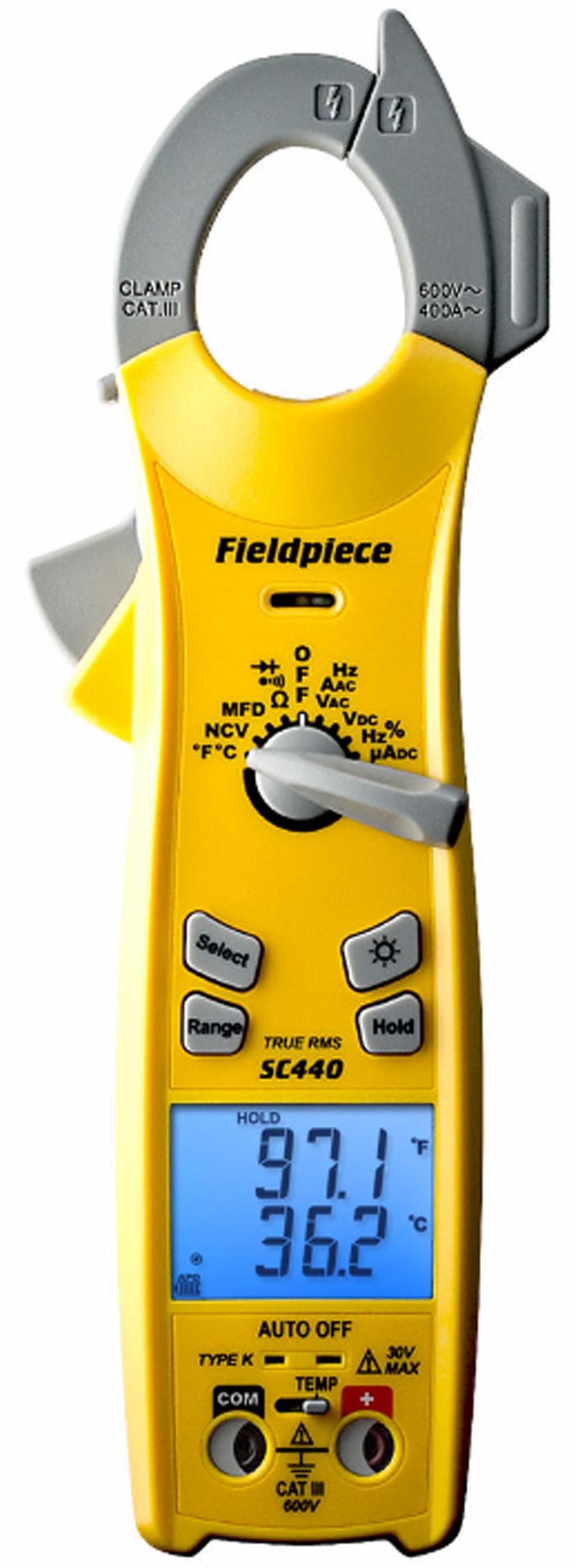 The mid-size essential clamp meter has virtually every parameter for electrical and thermal HVACR testing in one meter. This auto and manual ranger includes a host of safety features including a high-voltage LED and beeper, a continuity warning, push button non-contact voltage (NCV), a lead holder with detachable leads, and alligator probe tips for easy one-handed testing. As far as ranges go, it has temperature, capacitance, microamps DC for flame diode tests, and everyday electrical ranges for HVACR. Not to mention it is one of the most durable meters in the industry.