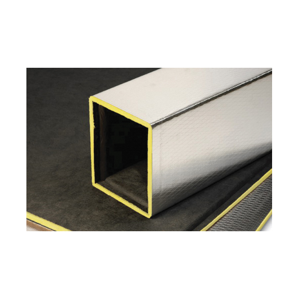 Mat-Faced Micro-AireĀ® duct board is produced from strong glass fibers, bonded with a thermosetting resin. The airstream side of Mat-Faced Micro-Aire duct board features a black fiber glass mat, which minimizes visibility of the duct system at supply air and return air outlets while providing excellent strength in high-velocity conditions. The exterior surface features a fire-resistant foil-scrim-kraft facing extending the full width of the male edge to serve as an integral closure flap for section joints. Mat-Faced Micro-Aire duct board is molded with double-density, male/female edges for secure connections..