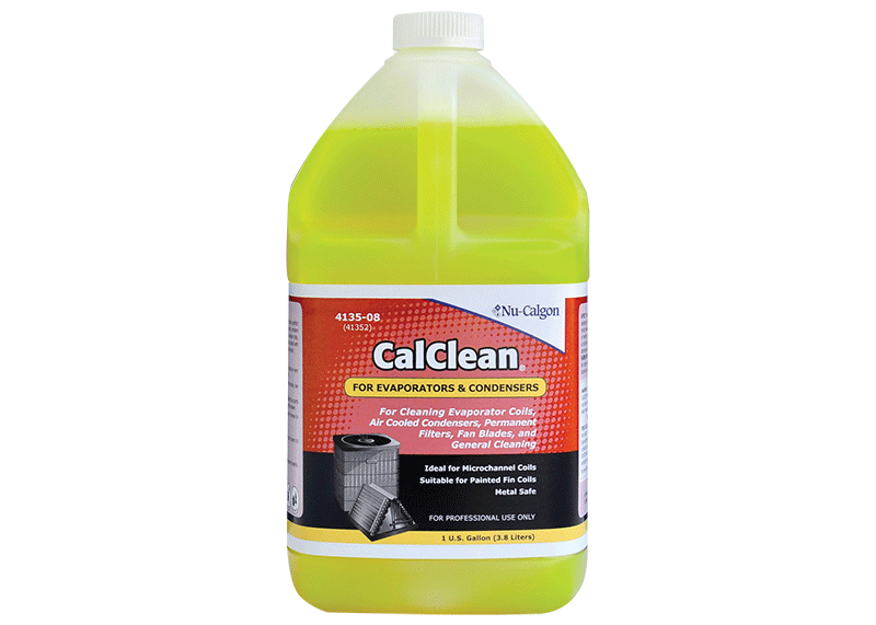 Use CalClean for fast and thorough cleaning of evaporator coils, heating coils, window units, air-cooled condensers and permanent air filters.