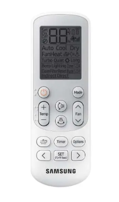 This wireless remote controller provides several control functions, such as on/off, operation mode, fan speed, airflow and temperature setting.