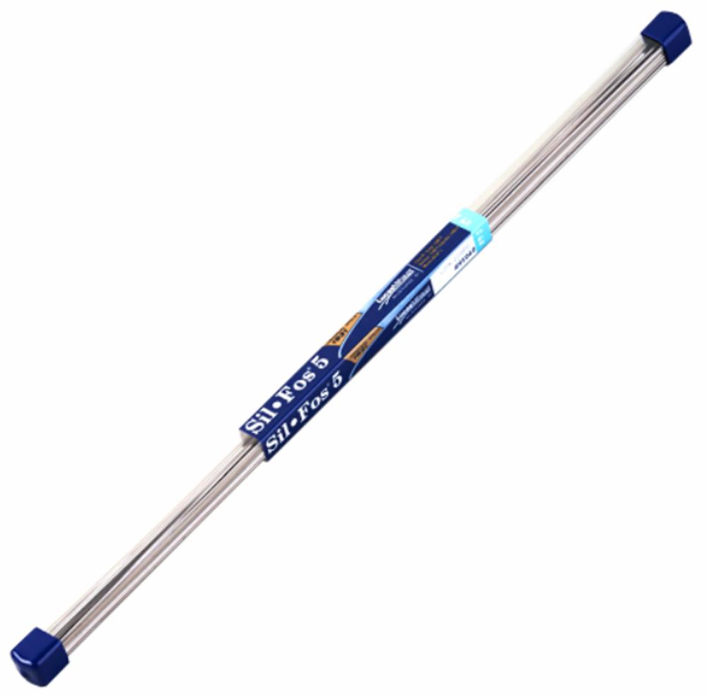SILVALOY® Sil-Fos 5 Rod, Silver;Copper;Phosphorus Chemical Composition, 30000 to 35000 lbs/in² (Copper);35000 to 40000 lbs/in² (Brass);35000 to 40000 lbs/in² (Nickel-Silver) Tensile Strength, +1325 to +1500 °F Temperature Rating, Copper;Brass Applicable Materials, Gray 20 in L, 0.125 in Dia. Designed primarily for those applications where close fit-ups cannot be maintained. It has the ability to fill gaps and form fillets without adversely affecting joint strength.